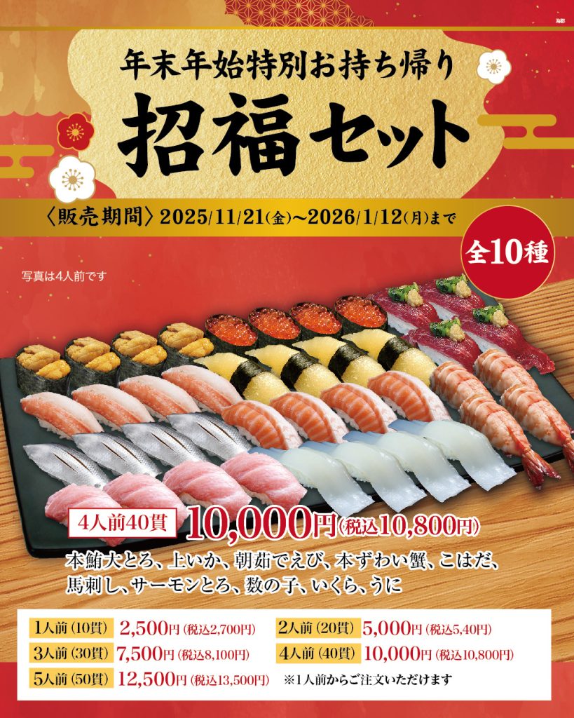 豪華なネタ10種類が入った限定のセットをご用意しました🍣